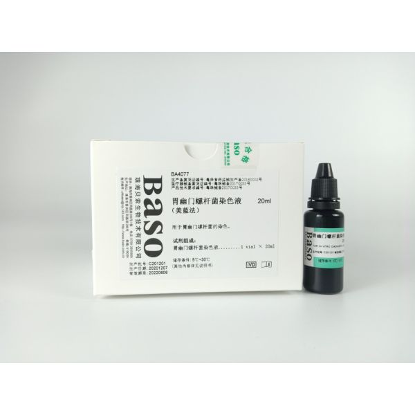 Helicobacter pylori is a gram-negative bacterium with short rod-shaped, both ends slightly bent. Helicobacter pylori mainly lives in the gastric mucosa epithelium and gastric gland mucus barrier, were closely related to chronic gastritis, peptic ulcer and gastric cancer. The common medical test of gastric Helicobacter pylori is traditional Silver nitrate method,but the reagent composition and operating procedures of method are more complex, but Baso Helicobacter pylori stain is a single reagent methylene blue method, can clearly show the Helicobacter Pylori.